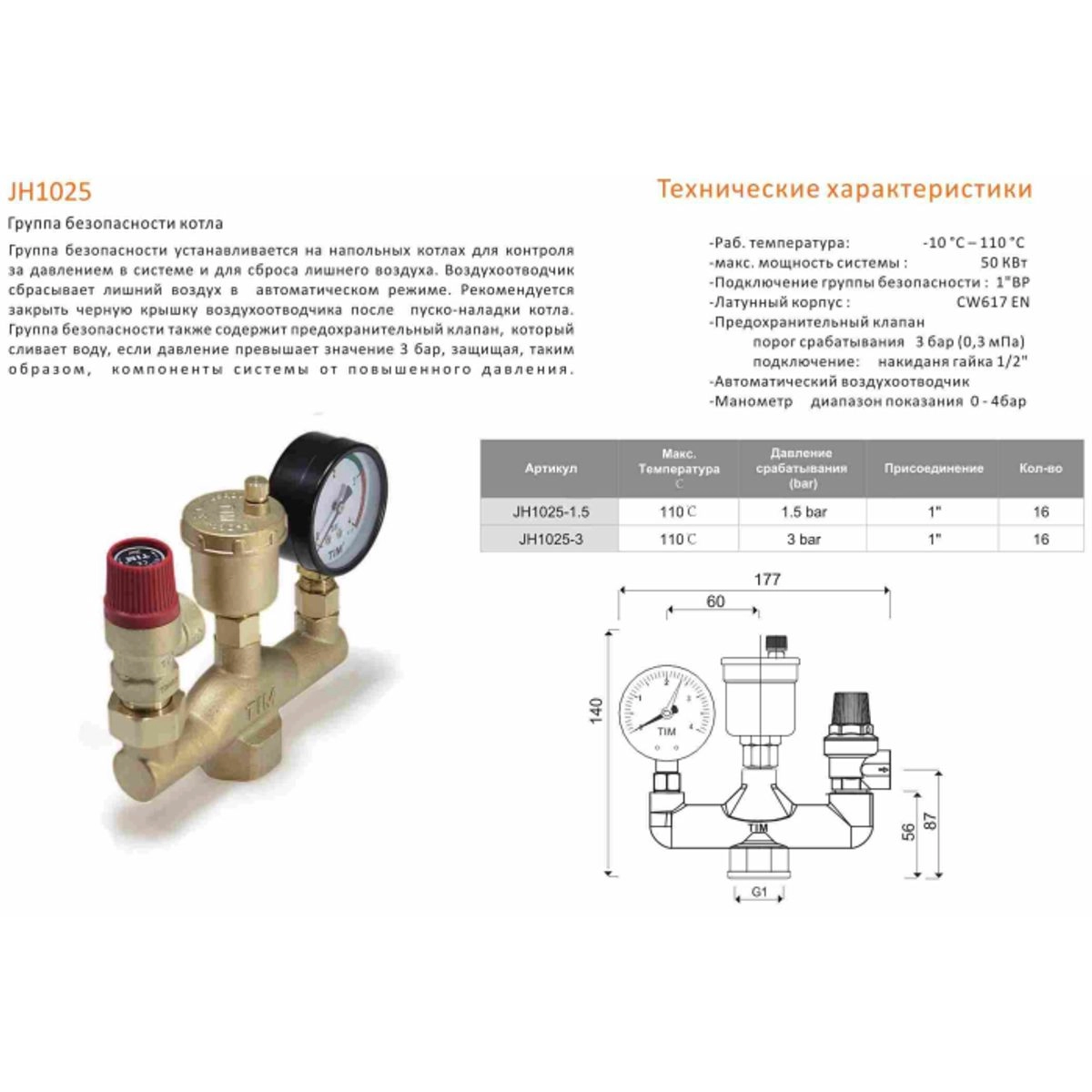 Давление настройки, max