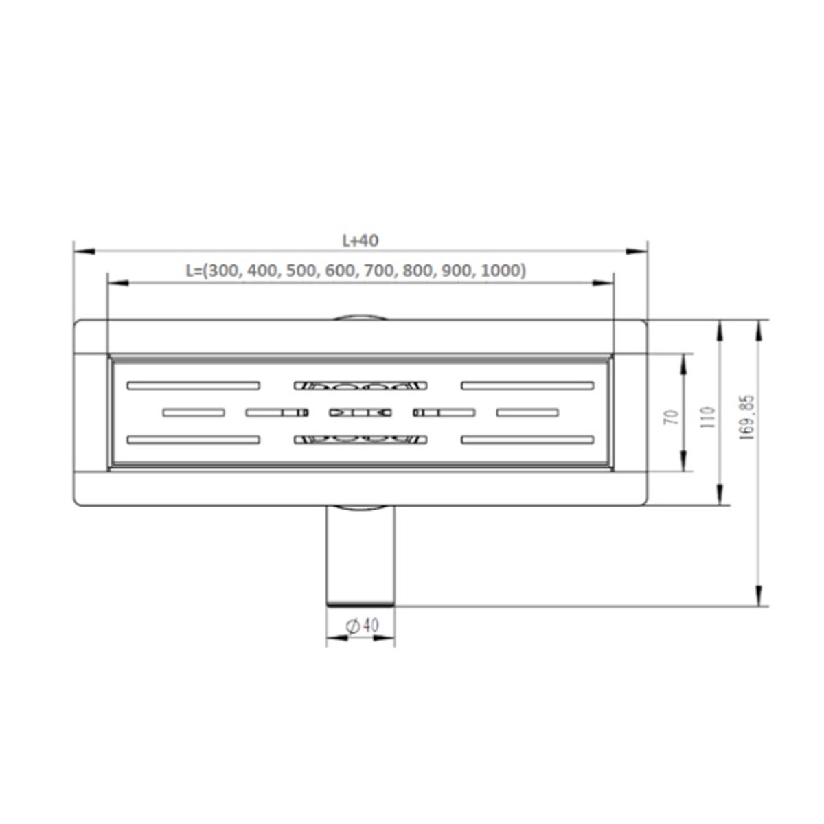 Желоб водоотводящий 800х70 мм VIEIR DL80A-C под плитку, с сухим затвором, слив 40/50мм, черный (мин.1/)