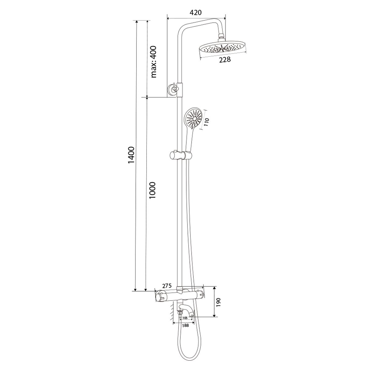 Тропические душевые стойки со смесителем