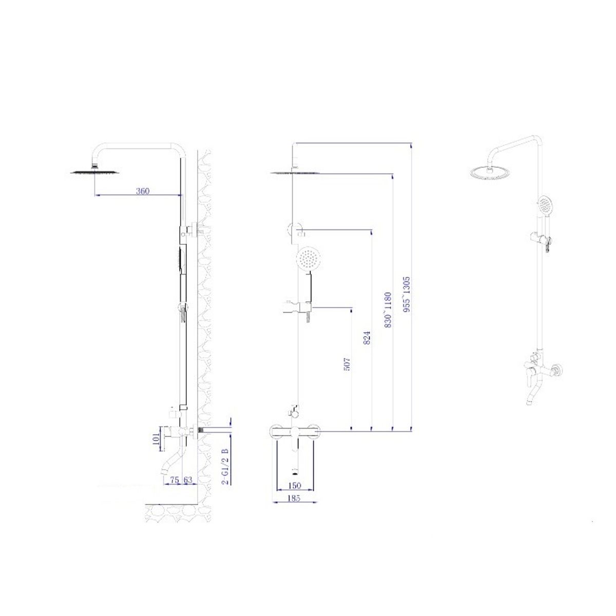Тропические душевые стойки со смесителем